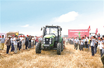 2015年,新一代“耕王”無人駕駛拖拉機(jī)進(jìn)行田間作業(yè)。(資料圖片)