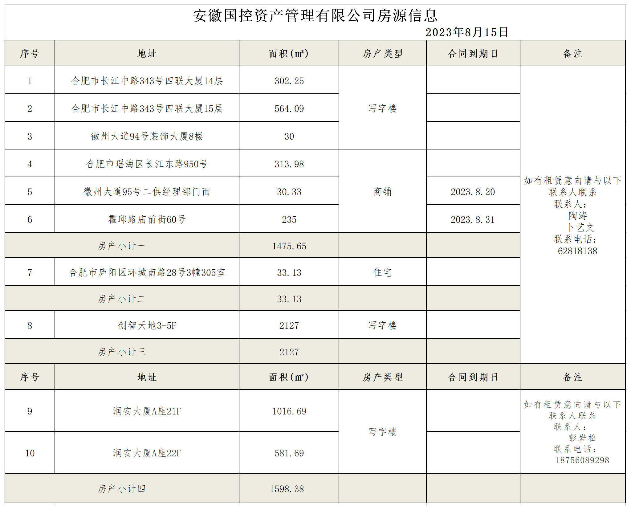 當前位置:首頁>>新聞中心>>通知公告>>安徽國控資產管理有限公司房源信息