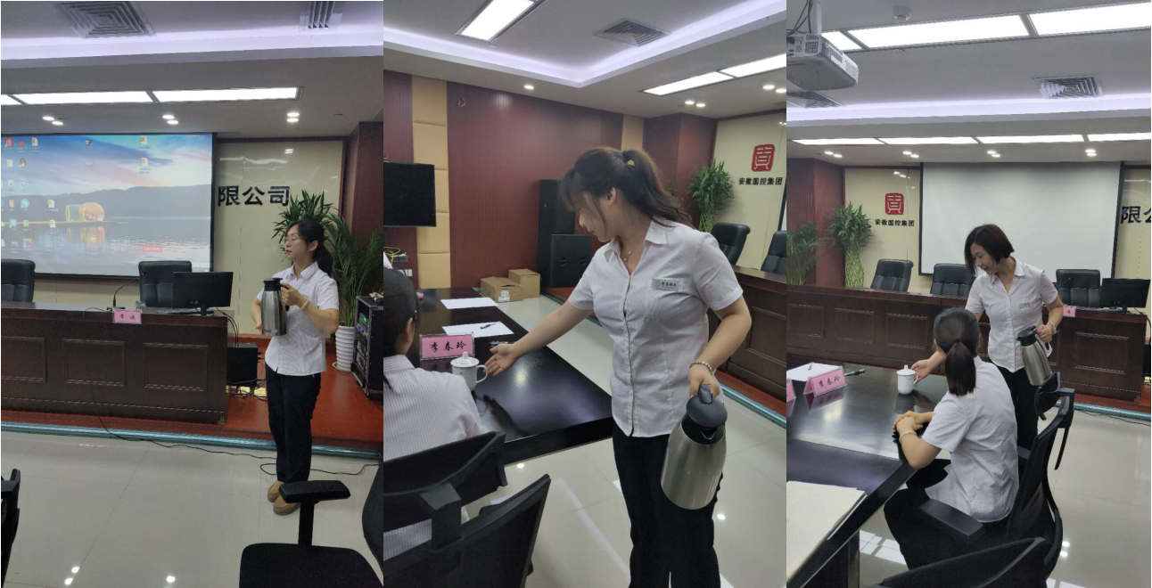 培訓(xùn)通過PPT形式,參訓(xùn)人員聆聽了會(huì)議服務(wù)流程、座位安排、席卡和稿紙擺放、斟茶與續(xù)水操作規(guī)范講解,并現(xiàn)場進(jìn)行了規(guī)范操作演示。